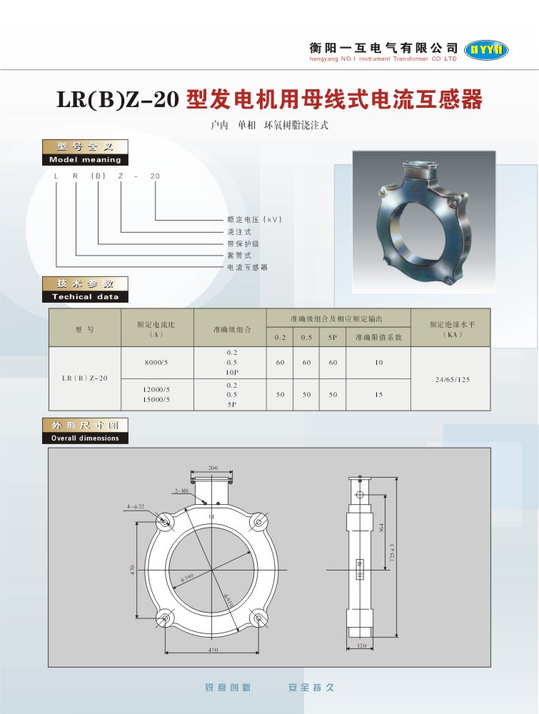 LR(B)Z-20型发电机用母线式电流互感器